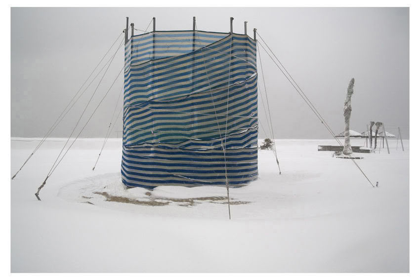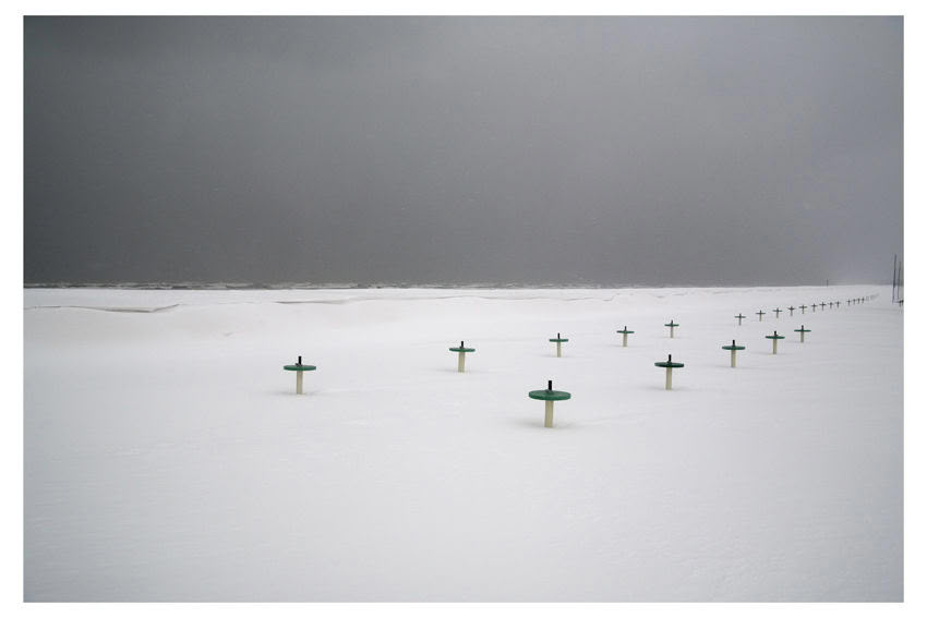 Le fotografie realizzate da Luigi Tazzari per questo nuovo progetto si distinguono rispetto alla sua produzione precedente in quanto meno esplicite, questa volta prendono infatti le distanze dalla conoscenza pregressa del luogo, tolgono inizialmente al fruitore ogni elemento utile alla collocazione geografica del paesaggio. L'area fotografata è quella che l'autore ha documentato più volte nel corso della sua carriera, in questa occasione però ne risulta difficile la riconoscibilità. Soltanto dopo un graduale svelamento si rende possibile l'identificazione di elementi codificabili. Tazzari ci mette in una condizione visiva in cui la linea dell'orizzonte e il candore dell'immagine diventano gli elementi predominanti. Queste enormi distese di neve che contrastano con il grigiore del cielo lasciano pensare a un paesaggio artico. Inizialmente non si percepisce alcuna forma, nessuna presenza umana, poi qualche elemento geometrico affiora, lascia pensare all'intervento dell'uomo, ma la sua figura compare in una sola immagine. Poco a poco aumentano gli indizi che portano a riconoscere nel paesaggio misterioso le tracce di quelle spiagge romagnole che Tazzari ha ampiamente esplorato in Un'estate al mare (2005), di cui si è occupato in Visual Echoes (2007) e che ha poi ripreso lungo l'intero corso dell'anno in Four Seasons (2009).