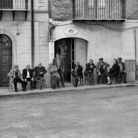 Inoltre, chi affonda le sue radici nel Sud, qualunque esso sia (Michele è nato in Puglia e vive in Sicilia), sviluppa la capacità di riconoscere scenari metafisici, composti di piccoli borghi, paeselli di collina, vicoli con case di pietra, e di individuare in questi luoghi vibranti di gesti tradizionali – il sagrato di una chiesa, il negoziante sull’uscio, gli anziani seduti sulle sedie impagliate – una certa fissità che invita alla contemplazione di cose mai mutate, che la storia ha conservato intatta, per gli occhi di tutti, fino ad oggi. Di Donato non si sottrae neanche a questa forma di osservazione e la percorre trasversalmente, per l’appunto fra immaginario e reale.